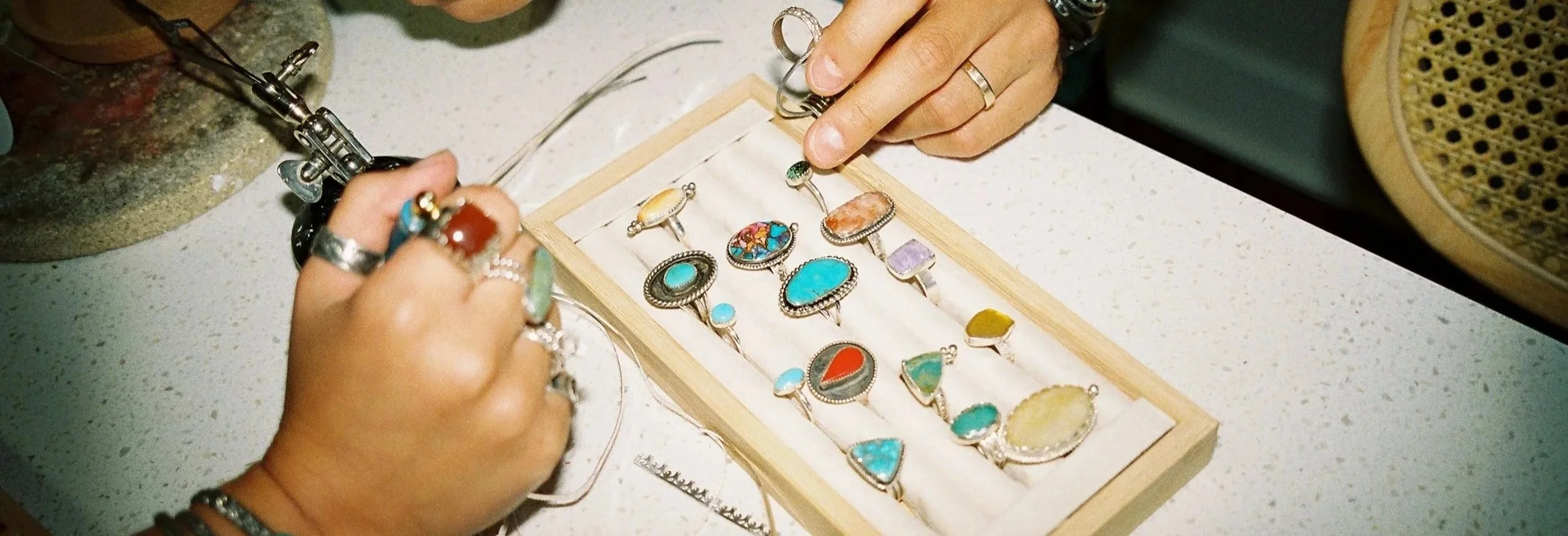 Each piece of jewelry in this collection was lovingly handcrafted in-studio by one of the skilled Sisu makers, bringing together sterling silver, high-quality gemstones, and thoughtful design in every detail. Made by the same artists who lead our workshops, these pieces blend creativity, craft, and heart — designed to be worn, cherished, and collected.
